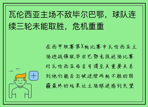 瓦伦西亚主场不敌毕尔巴鄂,球队连续三轮未能取胜,危机重重
