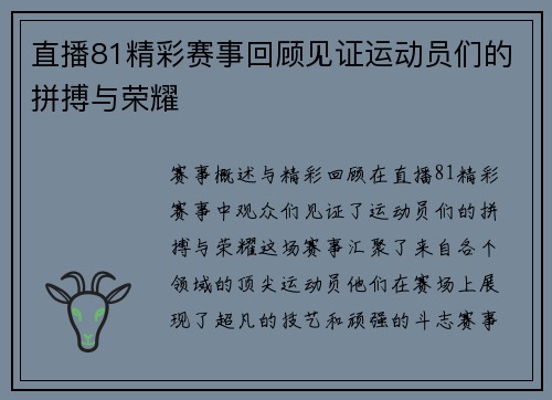 直播81精彩赛事回顾见证运动员们的拼搏与荣耀